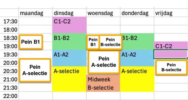 TFS D1: maandag 18:00-19:00 u in Houtigehage en donderdag 18:00-19:00 u in Drachtstercompagnie
